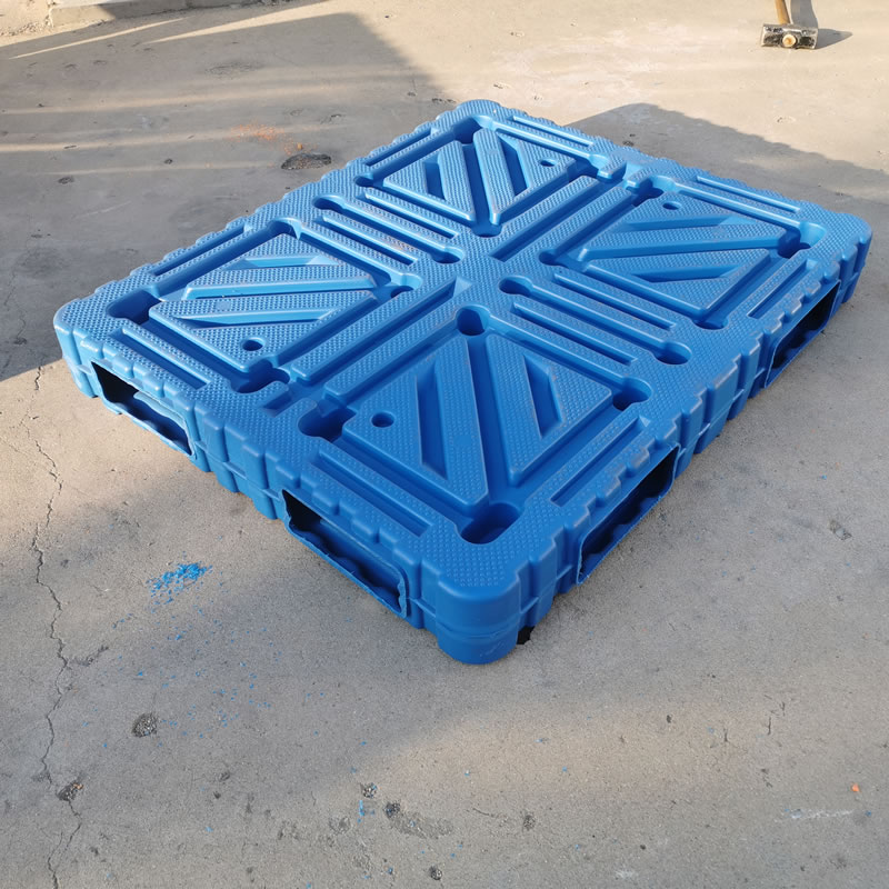 中空吹塑塑料托盤的生產(chǎn)與一般的中空制品吹塑成型方法相類似,因其產(chǎn)品較大,且為雙面型,需要較大的擠出機(jī)、合模機(jī)及模具等。目前國內(nèi)中空成型機(jī)制造廠家已經(jīng)研發(fā)出專業(yè)高速生產(chǎn)高強(qiáng)度吹塑托盤的超大型中空成型機(jī),采用HDPE(低壓高密度聚乙烯)高強(qiáng)度塑料生產(chǎn),成型速度較快,產(chǎn)品質(zhì)量較好,具有高強(qiáng)度、壽命長的特點(diǎn),一般吹塑托盤的使用壽命可以達(dá)到5~10年,同時(shí)可以在-40~70℃的環(huán)境下穩(wěn)定工作。其產(chǎn)品的動載可以達(dá)到3t以上,抗彎強(qiáng)度均是較高的水平。是高強(qiáng)度使用環(huán)境的首選托盤,目前其價(jià)格比注塑托盤偏高一些,但其使用壽命特別長,所以它的性價(jià)比是所有托盤中最高的。吹塑托盤隨著成型設(shè)備價(jià)格的大幅度降低,將會在近年內(nèi)獲得較快的發(fā)展。將對于節(jié)約有限的石油資源與物流成本有極大的好處。
